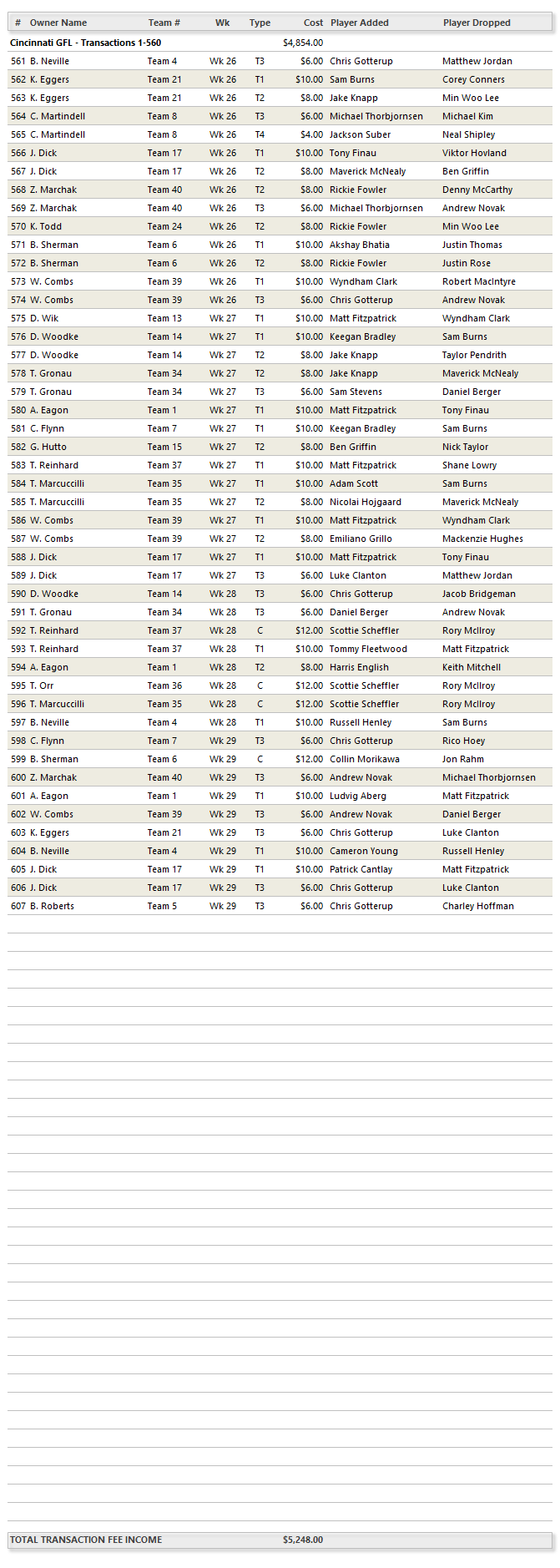 Current Rosters
